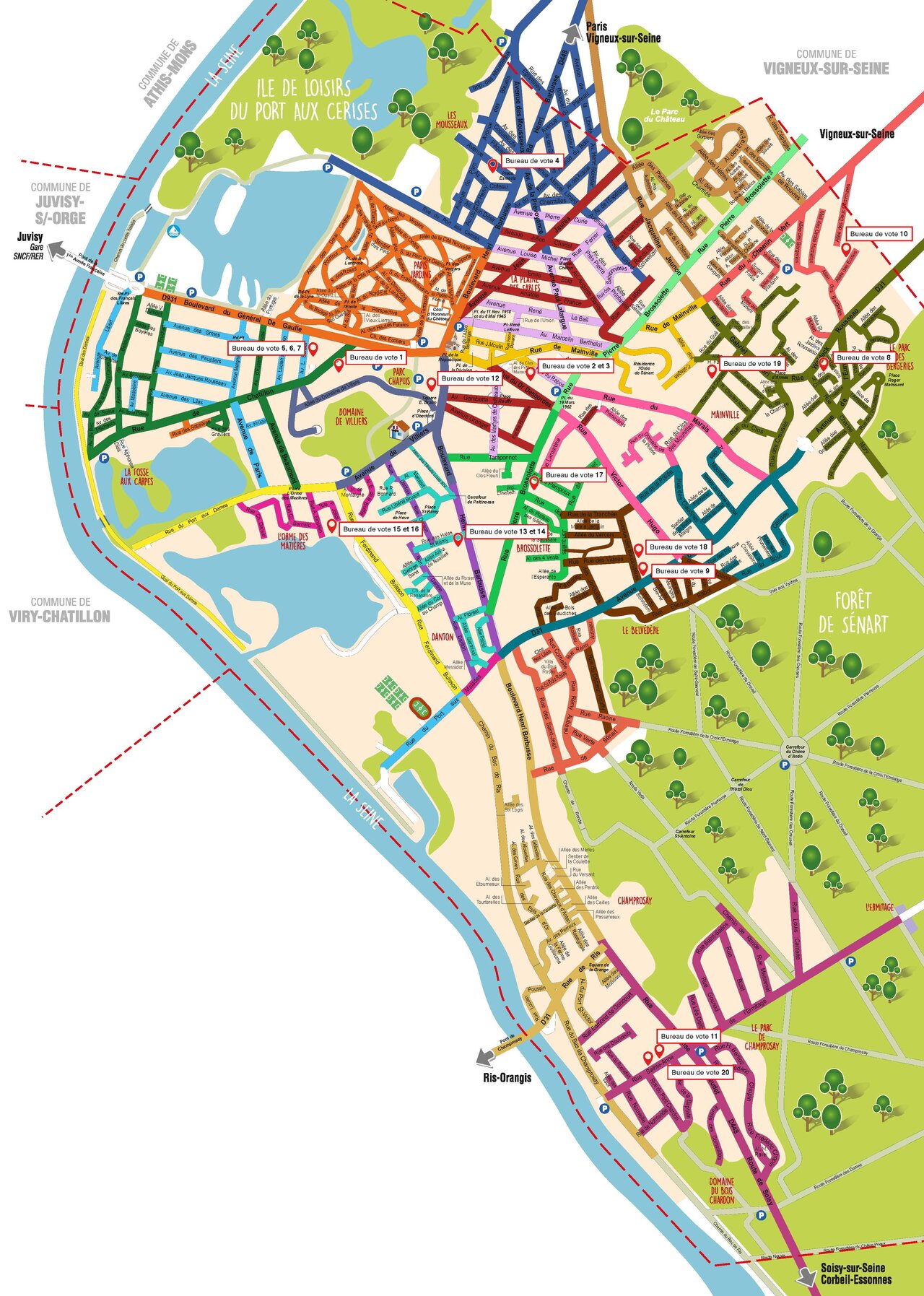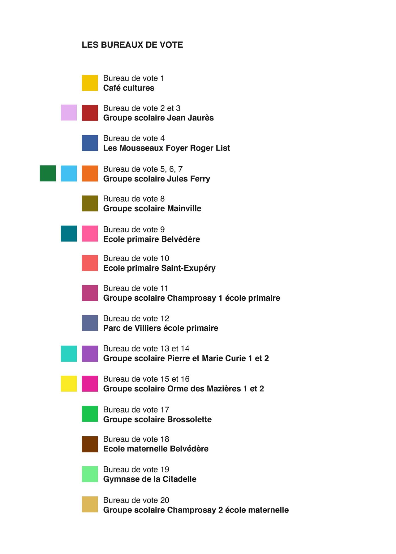 Vous pourrez retrouvez ci-dessous le plan de la ville indiquant les différents bureaux de vote en fonction des quartiers.
